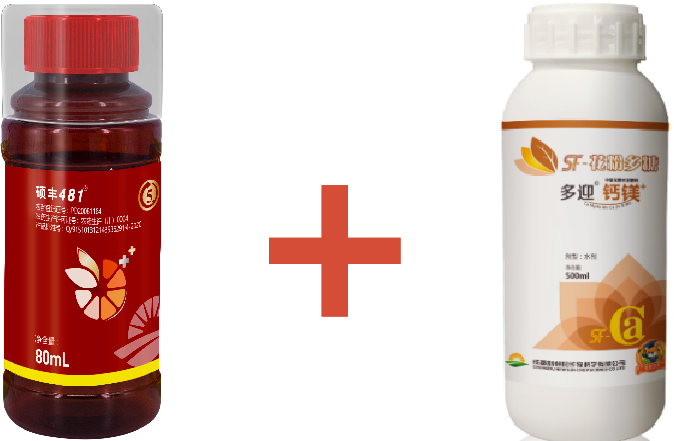 在雜柑的幼果膨大期使用天然蕓苔素+鈣鎂葉面肥能夠促進樹體補充鈣元素,果面光靚,減少裂果產生,預防日灼果。小編推薦:雜柑幼果膨大期,使用天然蕓苔素碩豐481?2000倍+多迎鈣鎂1000倍噴霧。與常規方案處理相比,此方案處理,果實直徑大、果面光亮,日灼果發生概率降低30%。